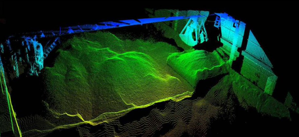? ?物料3D建模:3D點云數(shù)據(jù)采集,點云數(shù)據(jù)預處理,去除噪聲信息;建立整個庫區(qū)物料的準確模型。