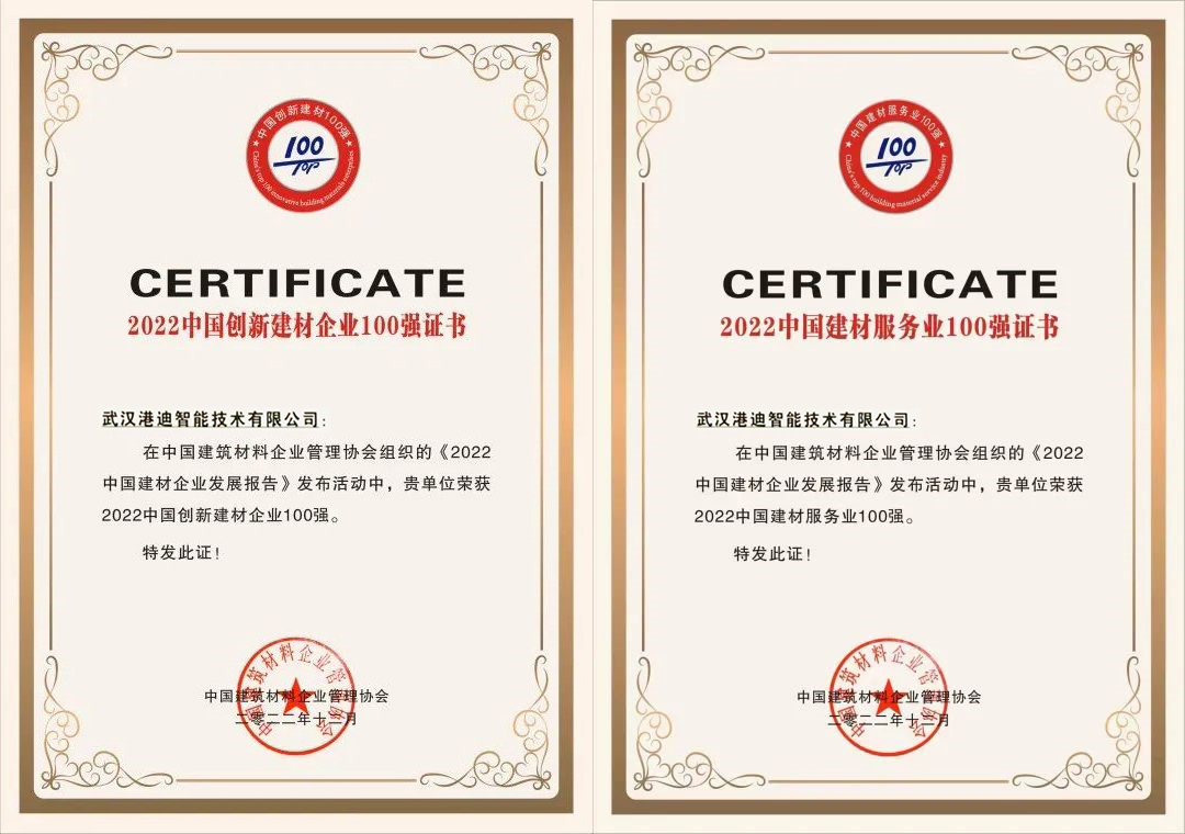 ? ? ? ?“中國創(chuàng)新建材企業(yè)100強(qiáng)”是目前建材領(lǐng)域最具影響力的獎(jiǎng)項(xiàng)之一,被譽(yù)為中國建材行業(yè)的“風(fēng)向標(biāo)”,評測結(jié)果已成為全面評判建材行業(yè)相關(guān)企業(yè)綜合實(shí)力及行業(yè)地位的重要標(biāo)準(zhǔn)。此次榮登“2022中國創(chuàng)新建材企業(yè)100強(qiáng)”、“2022中國建材服務(wù)業(yè)100強(qiáng)”榜單,是對港迪智能品牌實(shí)力的贊譽(yù)和優(yōu)質(zhì)產(chǎn)品的認(rèn)可,充分展示了港迪智能在推動(dòng)企業(yè)高質(zhì)量發(fā)展中的突出作為,這將激勵(lì)港迪智能堅(jiān)定不移地貫徹創(chuàng)新發(fā)展理念,為客戶提供優(yōu)質(zhì)的產(chǎn)品和服務(wù),助力行業(yè)再攀新高峰!